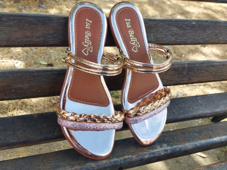 - Noite Brilhante: Para eventos noturnos, combine com uma calça skinny preta e uma blusa de tecido nobre, deixando o brilho da sandália ser o destaque.